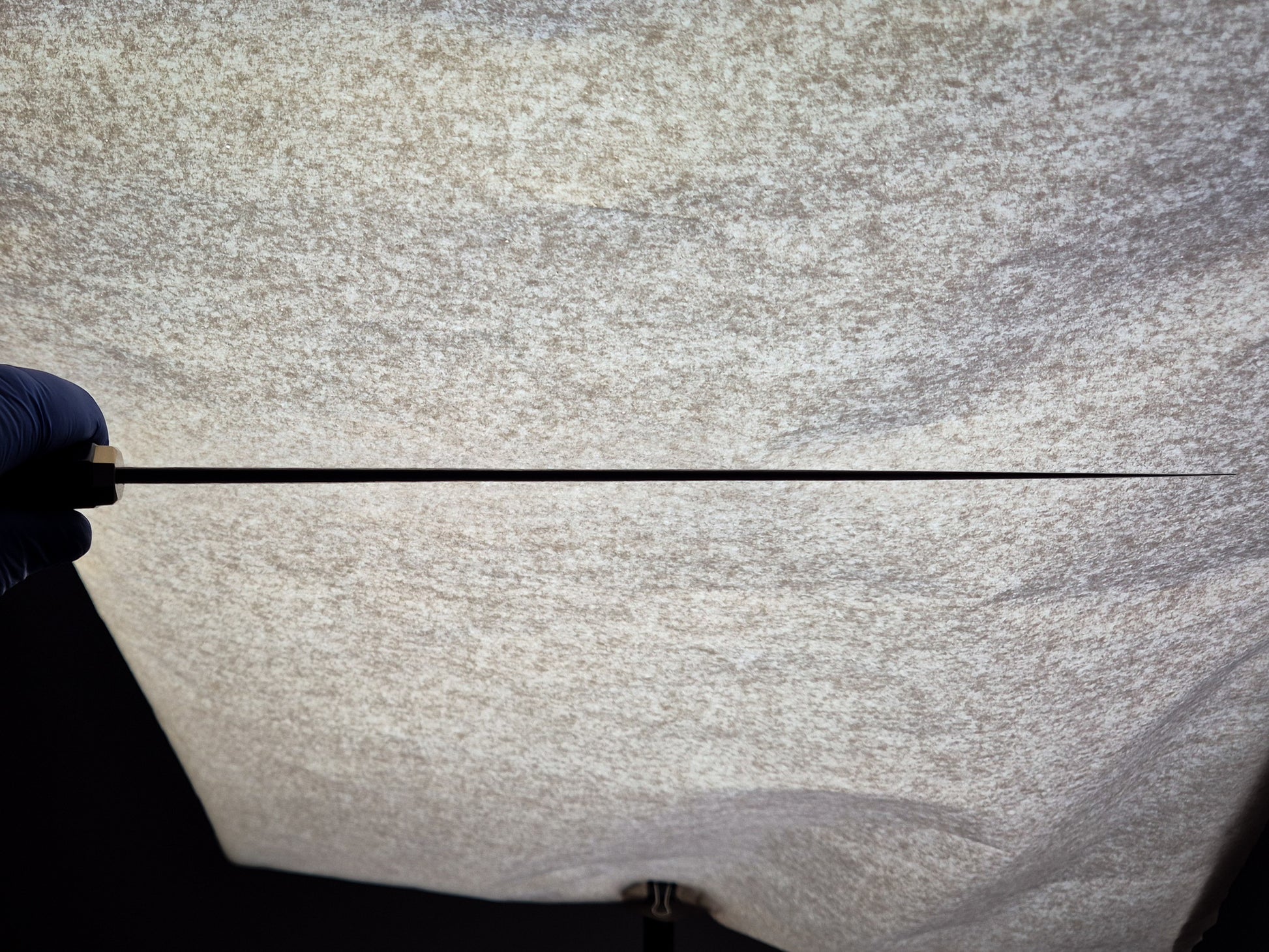 Convex grind with thin edge and sharp distal taper for ultimate performance. Polished spine and choil with satin, hand polished bevels with some forge finish above. Etched to highlight the steel pattern.