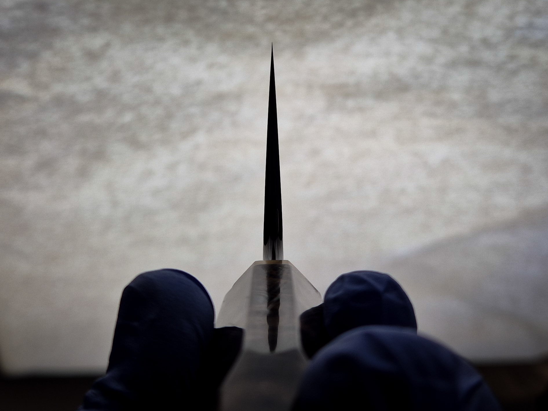 Convex grind with thin edge and sharp distal taper. Polished spine and choil with satin, hand polished bevels and acid etched to highlight the steel layup.