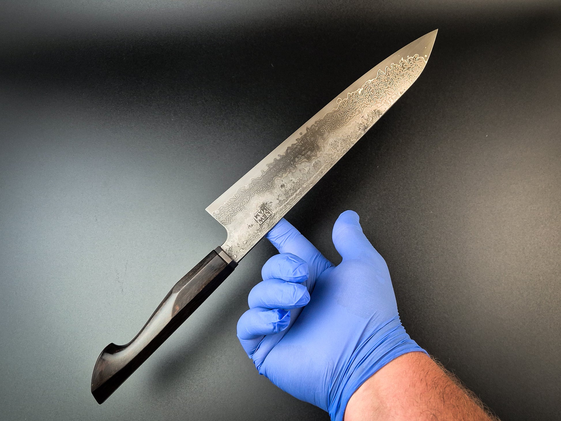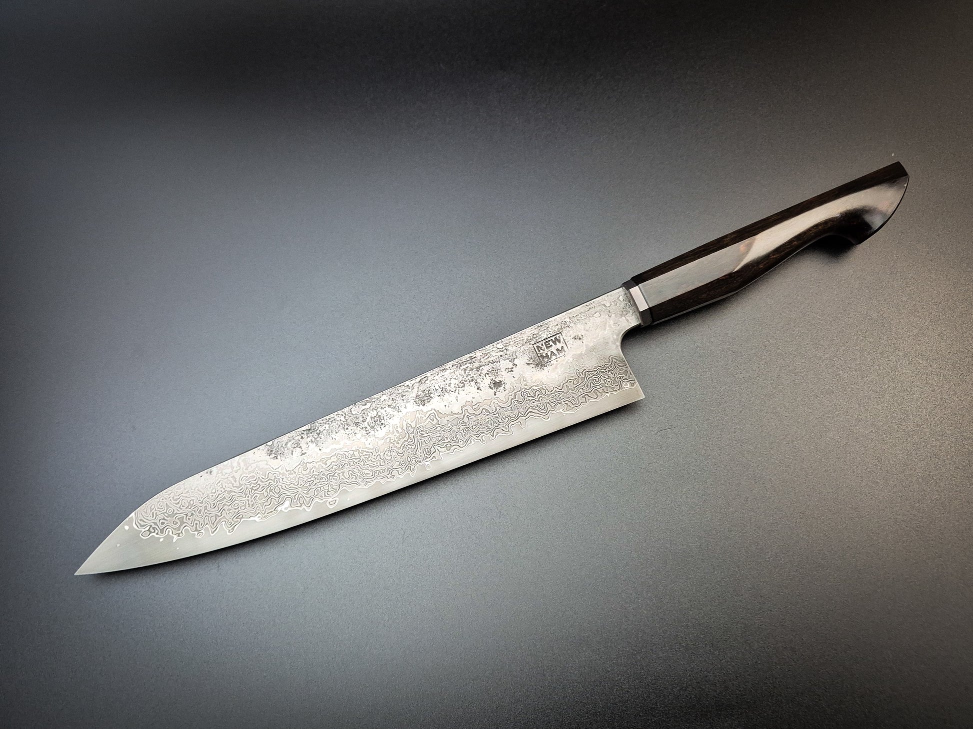 250x49mm gyuto in Apex Ultra with damascus cladding