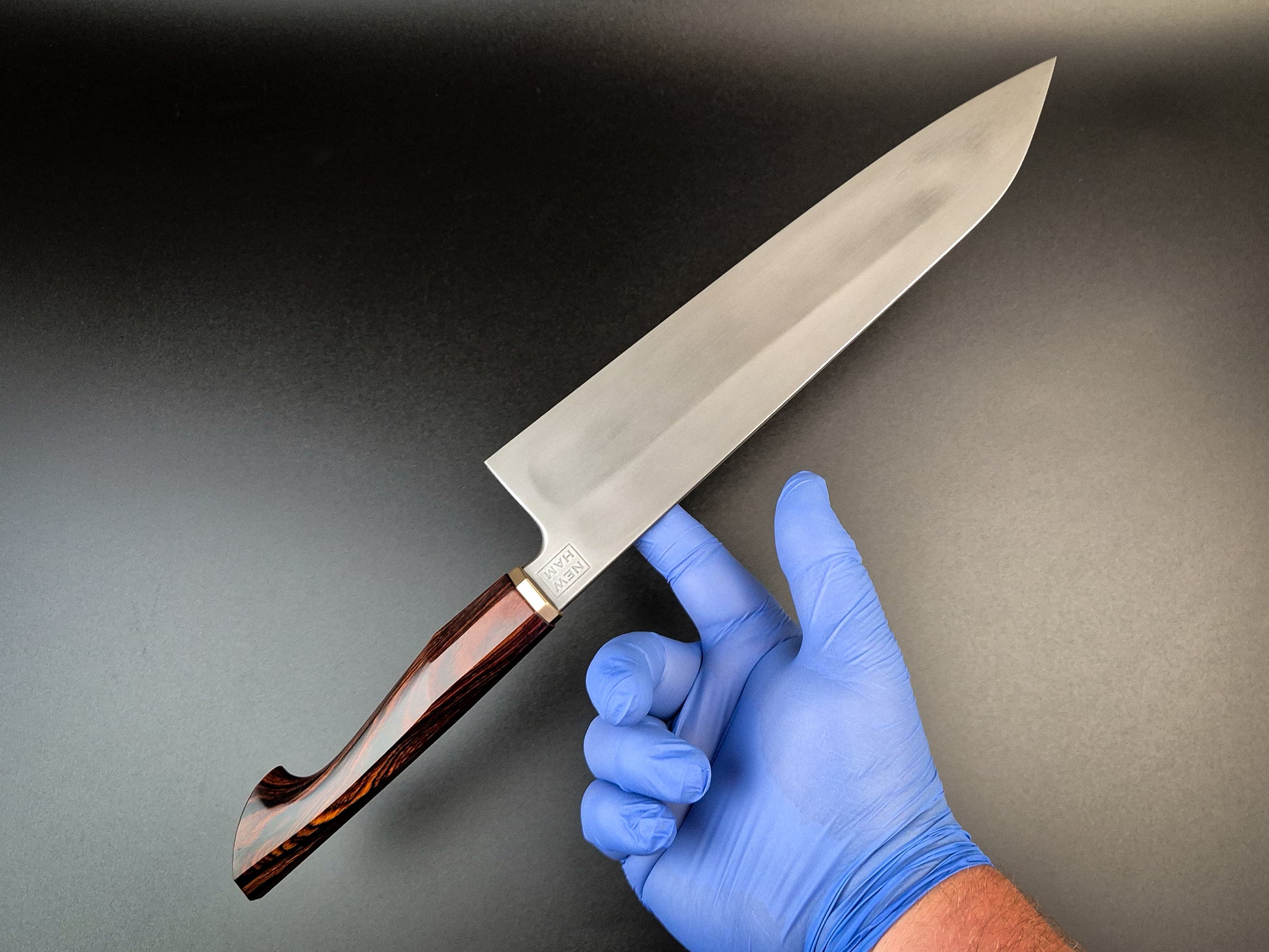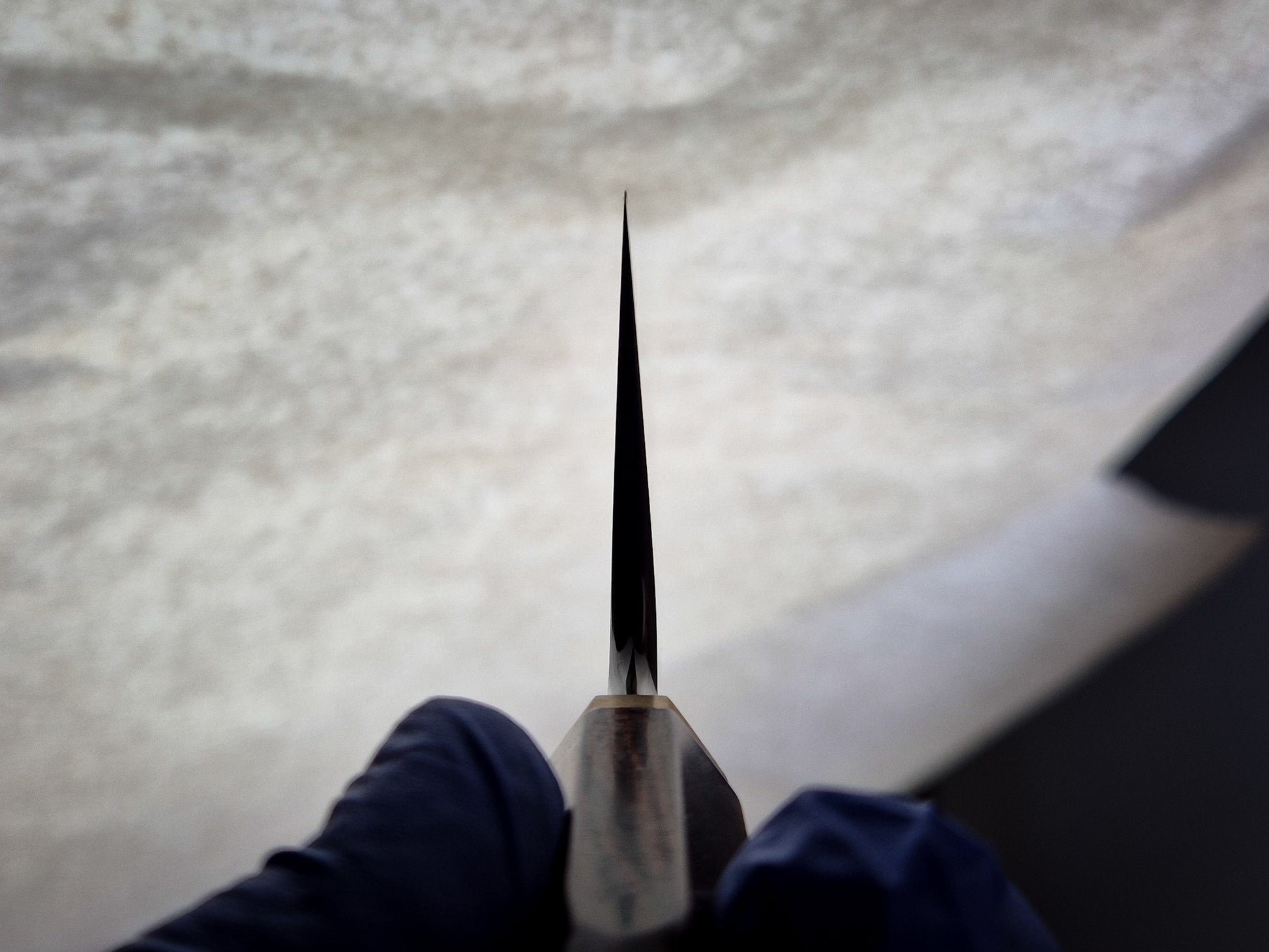 Please note this is a high hardness, keen edged high performance knife and as such care must be taken to protect the edge (i.e. please do not cut frozen foods).