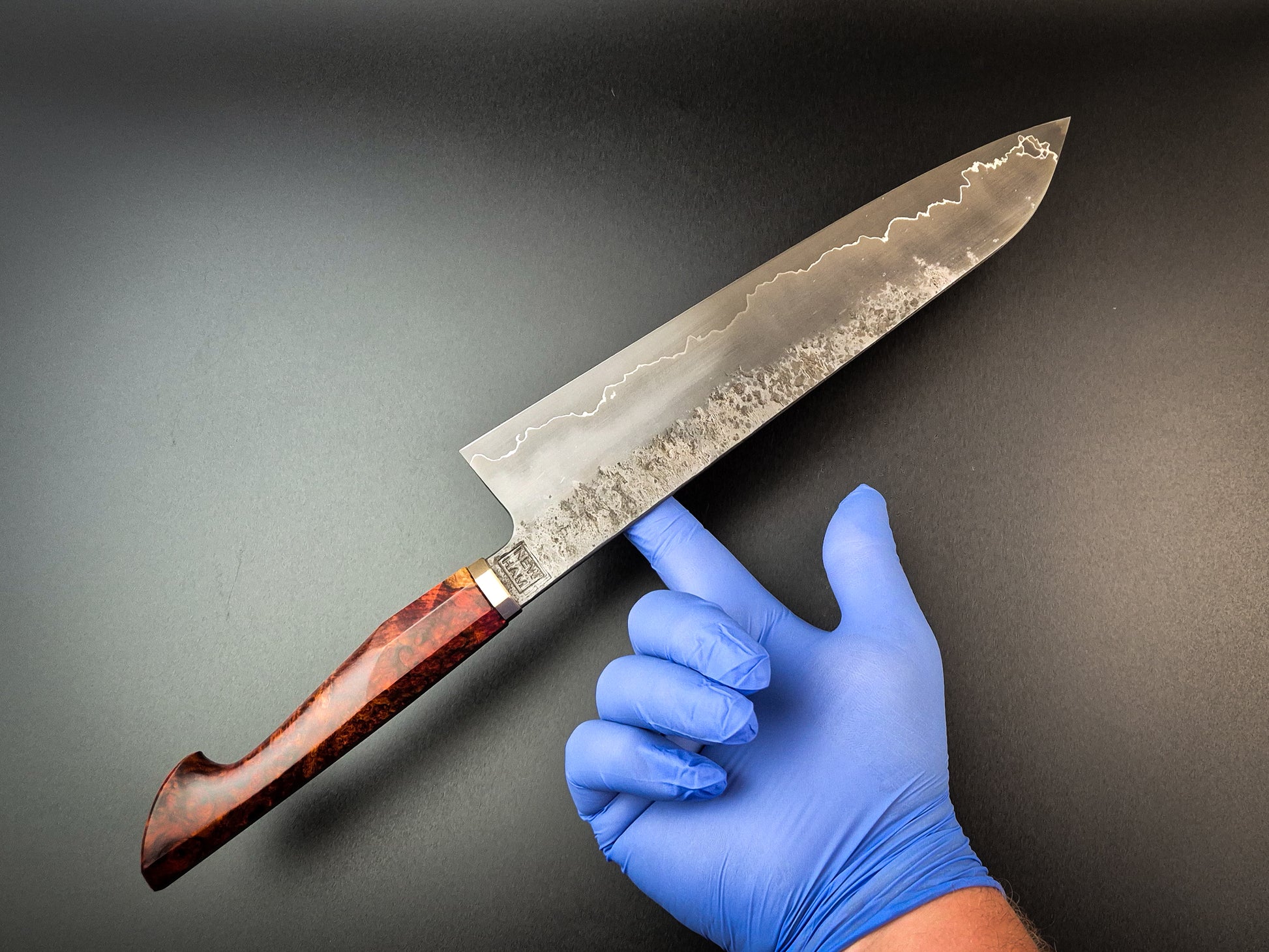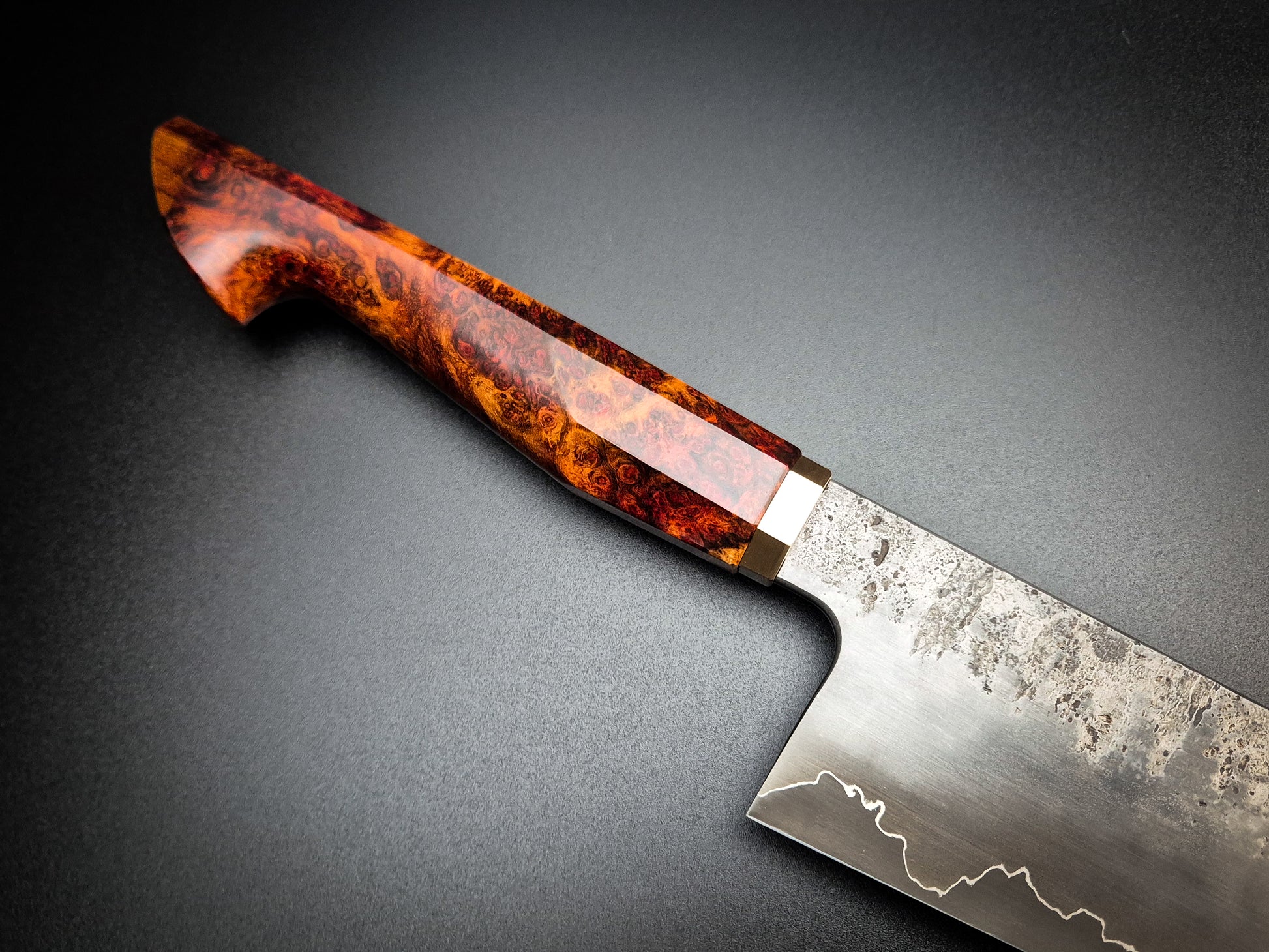 254x58mm gyuto in 52100 core with nickel and vintage iron cladding