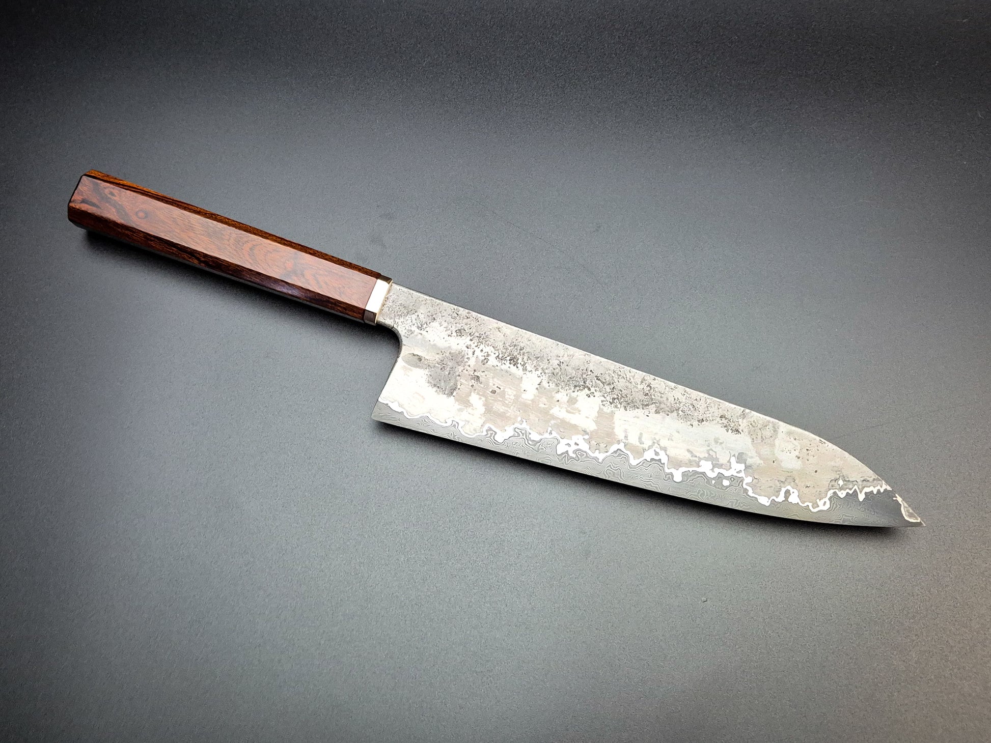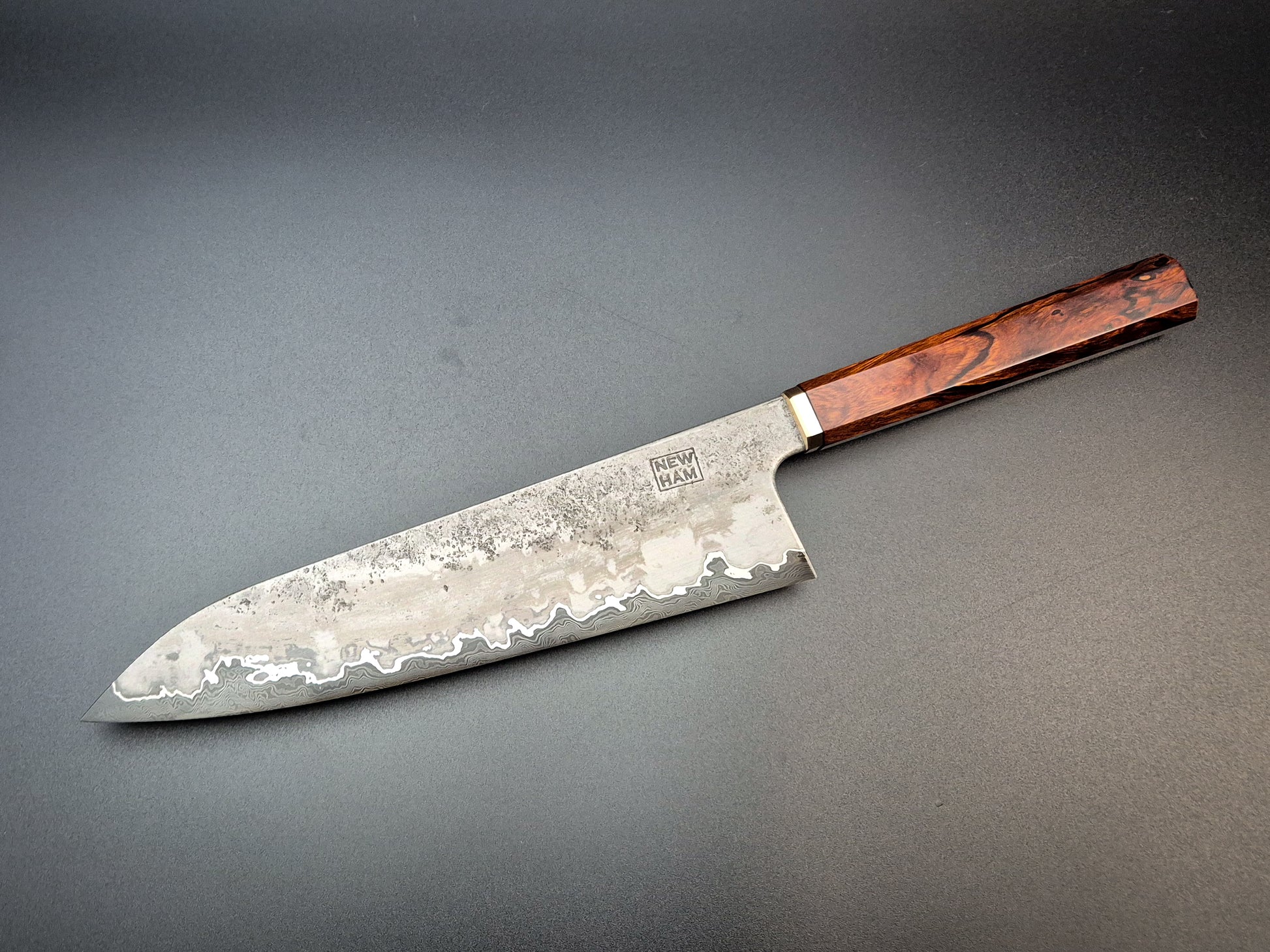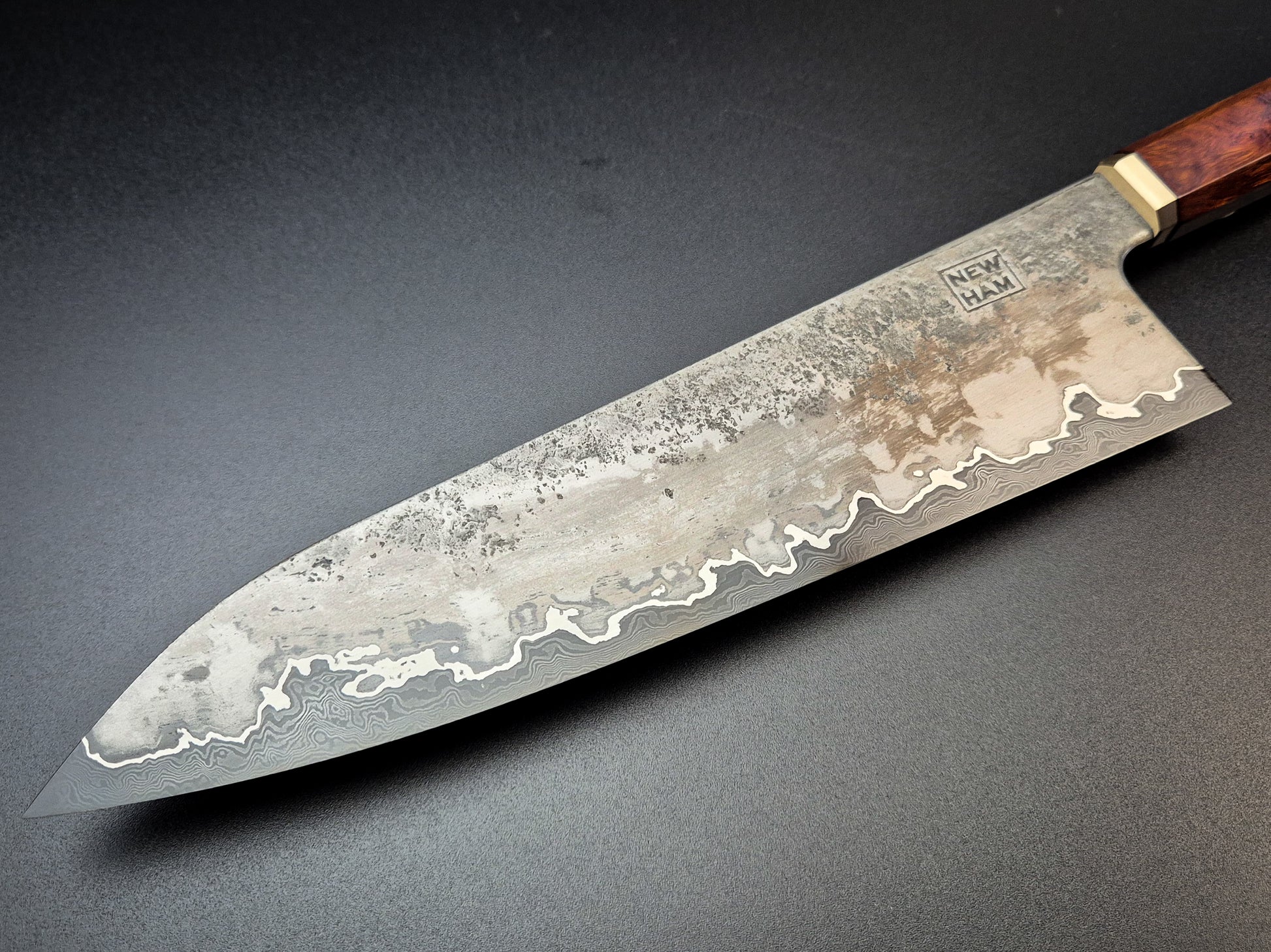 215x55mm gyuto in damascus core with nickel and Wrought iron cladding