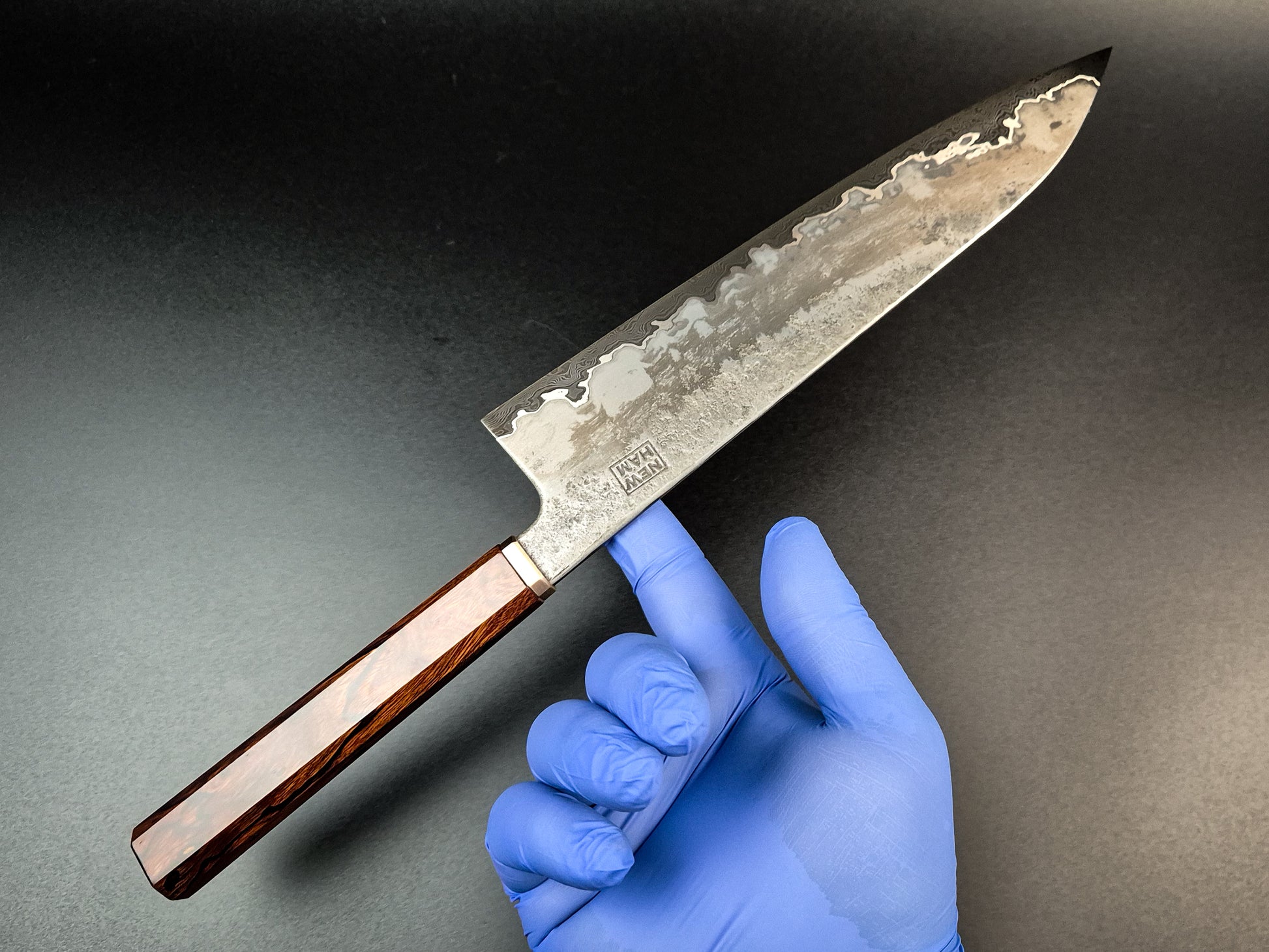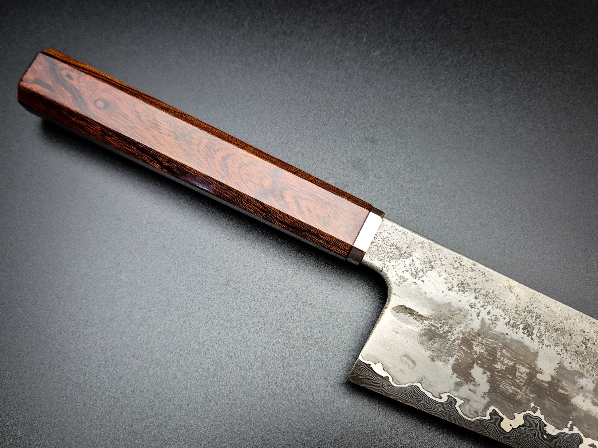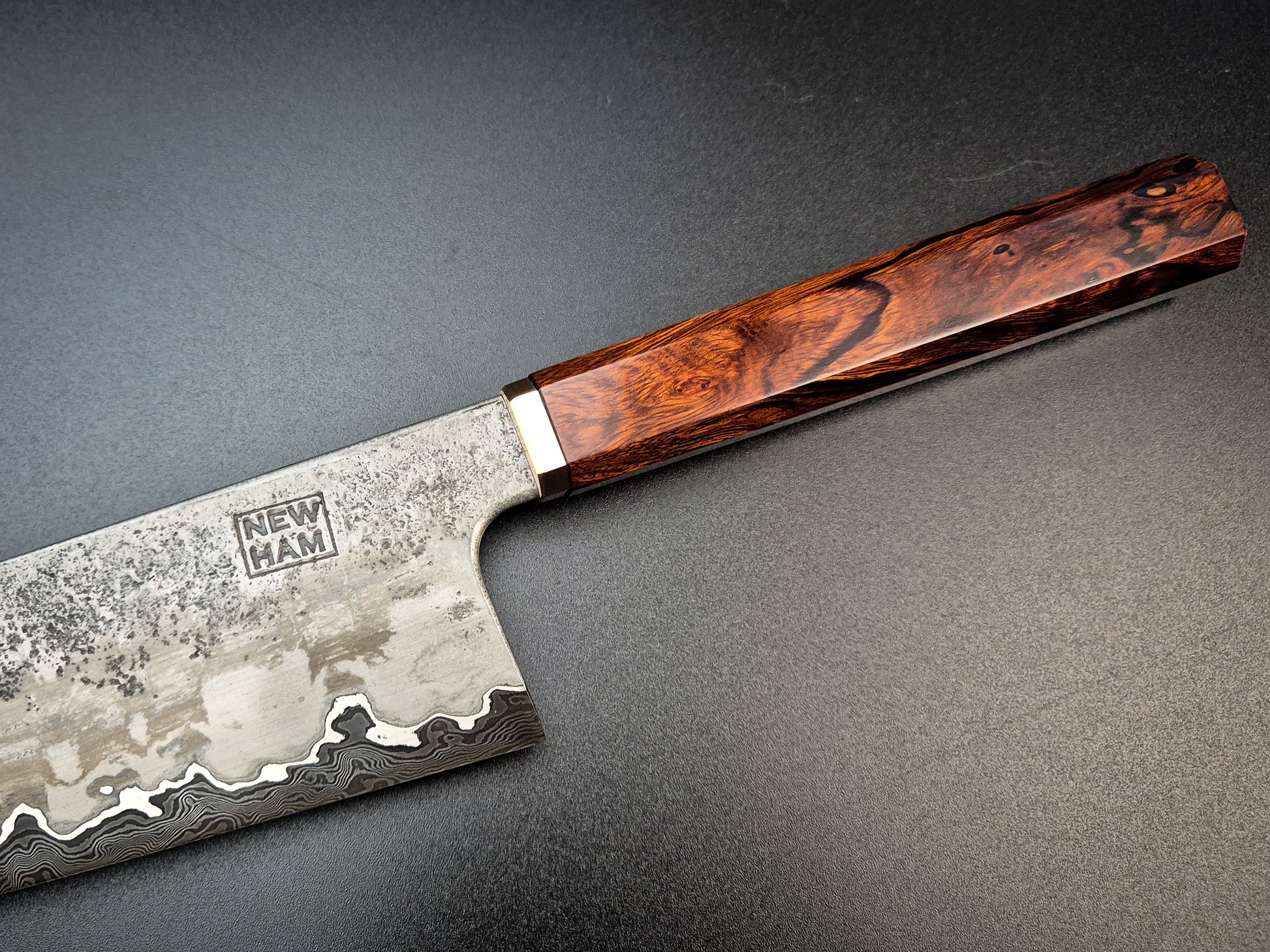 215x55mm gyuto in damascus core with nickel and Wrought iron cladding